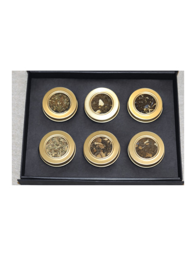Ce coffret élégant contient 6 petites boîtes contenant 2 thés noirs, 1 thé vert, 1 thé blanc, 1 rooibos et 1 tisane soigneusement sélectionnés pour ravir les amateurs et les passionnés. Chacune renferme un thé unique, aux arômes authentiques et aux saveurs délicates, offrant une expérience gustative riche et variée.
