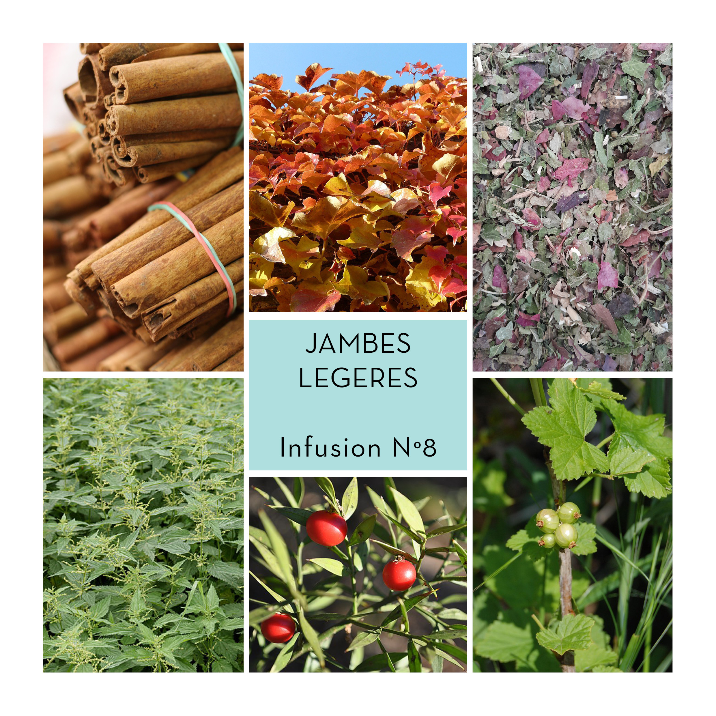 Ingrédients : Fragon petit houx*, Vigne rouge*, Ortie*, Cassis* & Cannelle*.