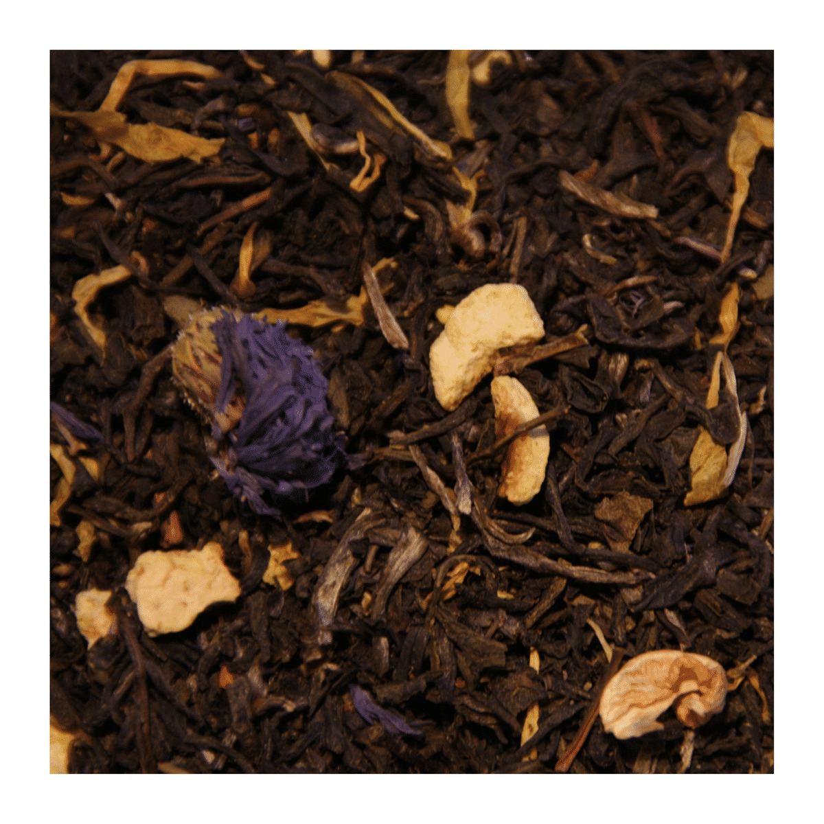 Ingrédients : Thé vert au Jasmin*, Écorces d’orange*, Arôme naturel, Fleurs de Souci* & Fleurs de Bleuet*