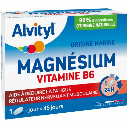 Alvityl Magnésium Vitamine B6 45 Comprimés est un complément alimentaire indiqué pour réduire la fatigue