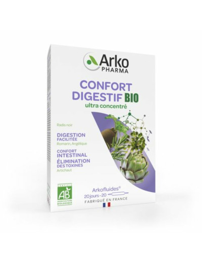 Arkofluides confort digestif des Laboratoires Arkopharma est un complément alimentaire à base de plantes.Arkofluides Confort digestif est composé de plantes biologiques et rigoureusement sélectionnées.