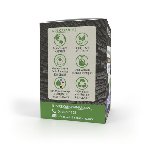 Arkogélules® BIO Charbon Végétal Activé, une formule innovante composée du 1er charbon actif 100% BIO extrait selon un procédé de fabrication breveté.