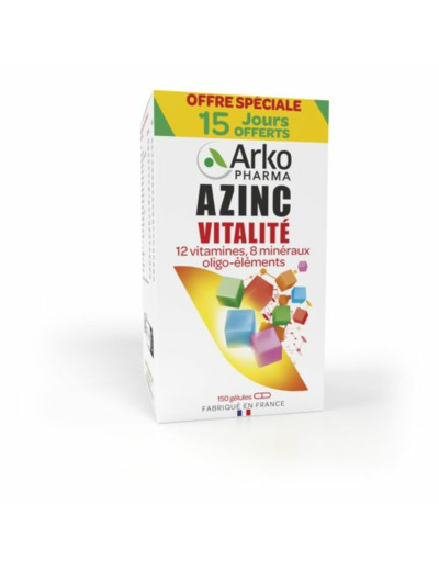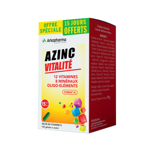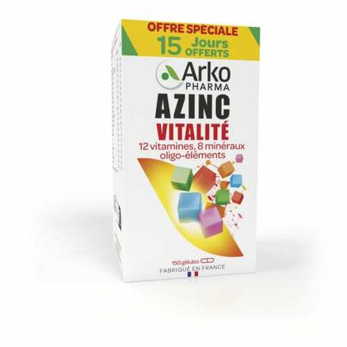 AZINC VITALITÉ 150 GELULES ARKOPHARMA aide l'organisme à retrouver vitalité et équilibre au quotidien grâce à sa formule complète.