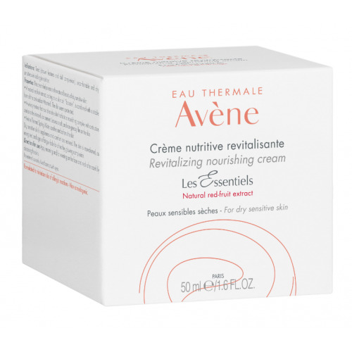 Cette crème nutritive revitalisante nourrit, apaise et protège les peaux sensibles sèches et dévitalisées. Elle agit sur les signes de fatigue (traits tirés et teint terne), réconforte les peaux inconfortables et en manque de nutrition, grâce à ses agents nutritifs de structure homologue au ciment intercellulaire, combinés à des huiles émollientes adoucissantes. Sa texture fondante laisse un voile de douceur non gras sur la peau, pour un effet révélateur de beauté naturelle. La composition de cette crème nutritive intègre un extrait naturel de fruits rouges « booster » des cellules de la peau et une forme stable de la vitamine E antioxydante pour lutter efficacement contre les signes de fatigue, ainsi que de l’Eau thermale d’Avène, apaisante et adoucissante. Les peaux sèches retrouvent souplesse et confort, le teint est éclatant.
