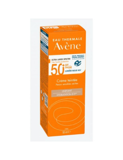 Avène Solaire Crème Teintée SPF 50+ 50 ml s'adresse particulièrement aux peaux hypersensibles au soleil, aux peaux claires et laiteuses (blond, roux) aux peaux toujours sujettes aux coups de soleil et, plus généralement, à toute peau exposée à un ensoleillement intense.