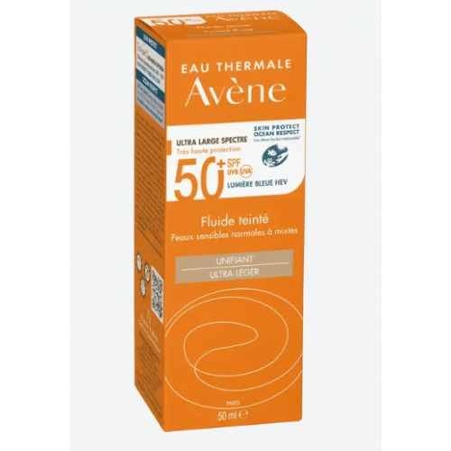 Avène Solaire Fluide Teinté SPF 50+ 50 ml est un fluide teinté unifiant de très haute protection (SPF 50+) spécialement formulé pour les peaux sensibles normales à mixtes.,Lire la suite