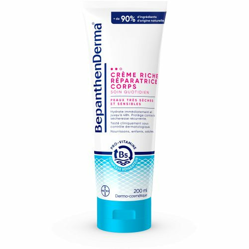 Prenez soin de votre peau avec BepanthenDerma® Crème Riche Réparatrice Corps qui procure une hydratation immédiate et jusqu'à 48 heures.
