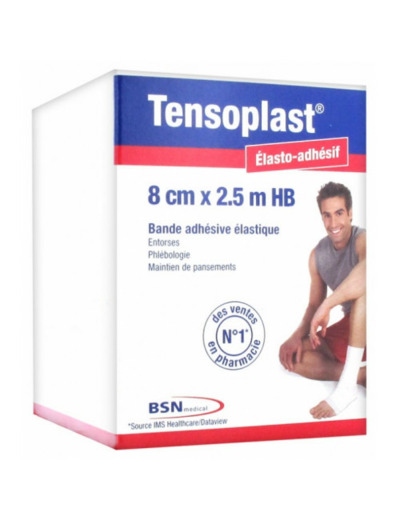 Bande HB Tensoplast ElastoplastePour une compression et un soutien forts et fiables haute adhésivité.Pour un maintien prolongé bords doux qui ne s'effilochent pas.Ligne jaune centrale pour un positionnement facile. Caractéristiques :100 % coton. Excellente tolérance.Lisières tissées : absence de fil flottant.Masse adhésive sans latex.Adhésivité immédiate et prolongée.Elasticité longitudinale nominale de 50 %.Effet de rappel élastique.Grande résistance aux contraintes de force. Indications : Assure une excellente qualité de contention adhésive souple sur pathologies articulaires et ligamentaires (entorses, luxations, tendinites, élongations) et compressions musculaires (claquages, déchirures).