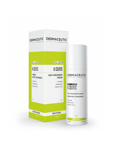 K Ceutic aide à nourrir la peau après une intervention esthétique, apaise et apporte les nutriments essentiels à la peau. Elle réduit les rougeurs cutanées, irritations et inflammations. La Vitamine K restaure les tissus micro-vasculaires, la Vitamine C reconstruit et la Vitamine E protège. K Ceutic comporte un indice SPF50 de protection solaire intégrée et camoufle les rougeurs grâce à sa teinte beige.K Ceutic aide à nourrir la peau après une intervention esthétique, apaise et apporte les nutriments essentiels à la peau. Elle réduit les rougeurs cutanées, irritations et inflammations. La Vitamine K restaure les tissus micro-vasculaires, la Vitamine C reconstruit et la Vitamine E protège. K Ceutic comporte un indice SPF50 de protection solaire intégrée et camoufle les rougeurs grâce à sa teinte beige.