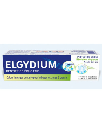 Grâce à son complexe de colorants spécifiquement étudiés, ce dentifrice révélateur de plaque dentaire Elgydium colore la plaque dentaire afin que l’usager la visualise plus précisément et intensifie son brossage sur des zones ciblées. Il permet, par ailleurs, de rendre compte de l’ampleur de cette plaque sur sa dentition. Formulé à partir de Fluorinol à 1000 ppm d’ions fluor, il assure également une reminéralisation de l’émail des dents et contribue à leur renforcement contre les infections bactériennes, les caries.Il est réservé aux enfants à partir de 7 ans et convient très bien aux porteurs d'appareil dentaire. Son arôme de pomme fraîche laisse un goût agréable en bouche après le brossage. Il peut être utilisé quotidiennement ou en complément d'un dentifrice classique.