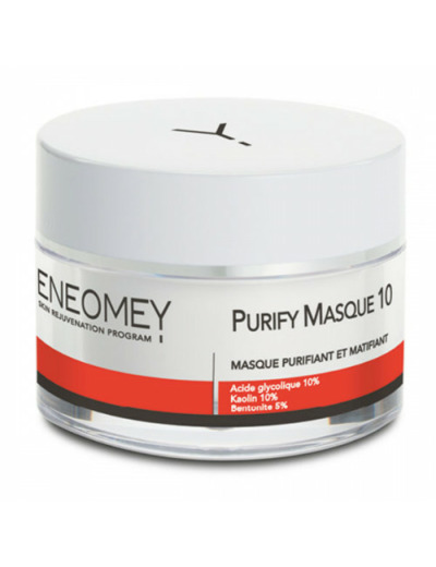 La formule optimisée du masque PURIFY MASQUE 10 contient un véritable complexe d’actifs puissants contre l’acné. ENEOMEY a choisi une texture argile plus crémeuse et occlusive afin de garantir une absorption du sébum optimale pour les peaux mixtes, grasses et à tendance acnéique.