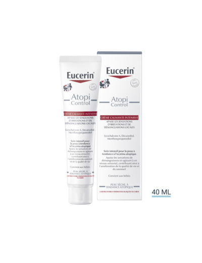 EUCERIN AtopiControl Crème Calmante Intensive  a été spécialement formulée pour soulager intensivement les peaux à tendance à l’eczéma atopique. La formule contient un complexe unique d'ingrédients actifs: la Licochalcone A apaisante, le Decandiol anti-bactérien et le Menthoxypropandiol (MPD) anti-irritant et rafraîchissant. Ce complexe, associé à une concentration élevée en céramides, renforce la barrière cutanée, atténue la sécheresse et soulage les sensations de démangeaisons, réduisant ainsi le besoin de se gratter.