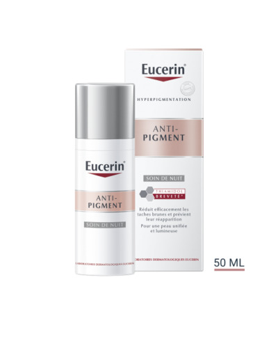 Eucerin ANTI-PIGMENT Soin de Nuit contient du Thiamidol, un ingrédient efficace et breveté qui agit à la base de l'hyperpigmentation en réduisant la production de mélanine. Il est cliniquement et dermatologiquement prouvé qu'il réduit les taches brunes et empêche leur réapparition. Les premiers résultats sont visibles après deux semaines et s'améliorent continuellement avec une utilisation régulière.