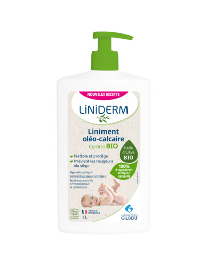 LINIDERM Liniment oléo-calcaire des Laboratoires GILBERT est un soin nettoyant et protecteur pour le change, basé sur la formule de la Pharmacopée Française. Sa formule hypoallergénique respecte la peau fragile des nourrissons.