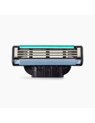 Située à l’arrière de la tête Mach3, la bande Lubrastrip facilite la glisse des lames sur la peau. Au contact de l’eau, elle dépose sur le visage des agents lubrifiants qui créent une couche protectrice. Ainsi, les risques d’irritations et de coupures sont réduits.