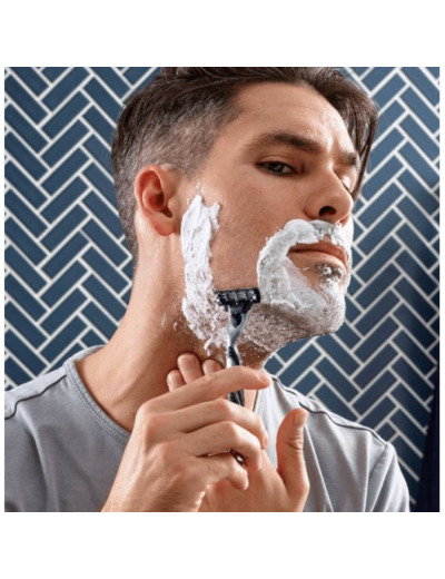 Les 3 lames de rasoir Mach3 sont plus résistantes que l’acier et restent plus longtemps affûtées grâce à leur revêtement en carbone. Leur bande lubrifiante glisse sur la peau pour la protéger contre les rougeurs, tandis que le garde-confort tend la peau afin de préparer le poil à la coupe. Les recharges de lames Mach3 sont conçues pour procurer 15 rasages confortables.