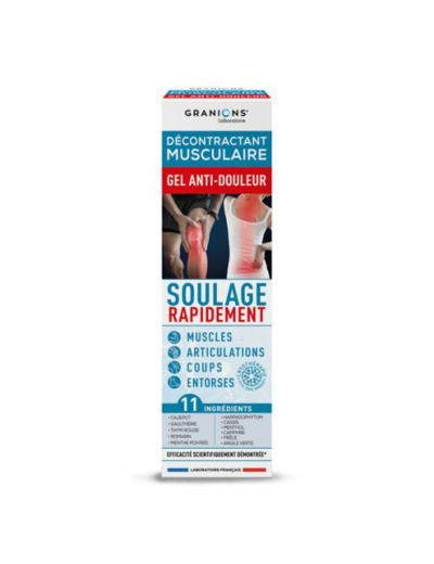 Pour soulager vos muscles, articulations et douleurs post-traumatiques, le Laboratoire des Granions, laboratoire pharmaceutique français, créé en 1948, vous propose le Décontractant Musculaire gel anti-douleur.