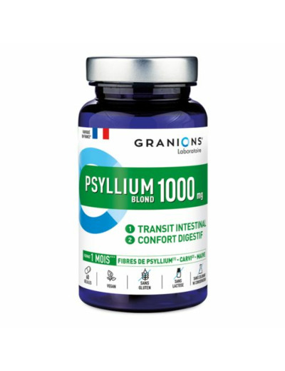 Le PSYLLIUM 1000 mg de Granions est dédié au transit. La formule est hautement dosée en psyllium qui facilite le transit intestinal. La formule est également complétée par du carvi, actif reconnu pour aider à limiter les inconforts digestifs tels que les ballonnements, ainsi que du pruneau, de la mauve et du magnésium.