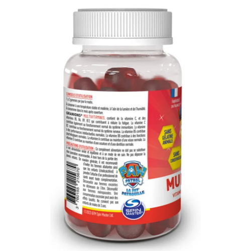 Gummies Pat'Patrouille du laboratoire des Granions pour enfants pour faire le plein de vitamines. Goût fraise.