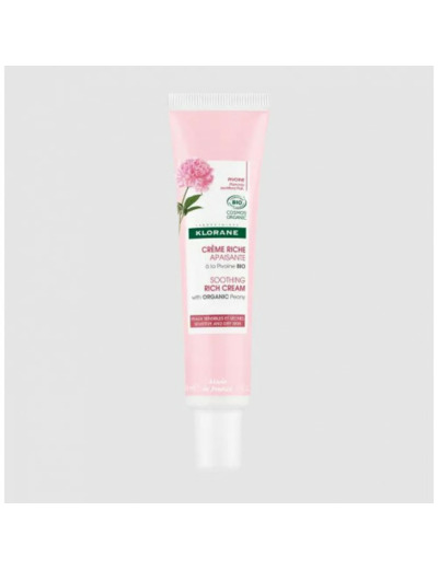 Crème Riche Apaisante Bio 40Ml Pivoine Peaux Sensibles Et Sèches Klorane