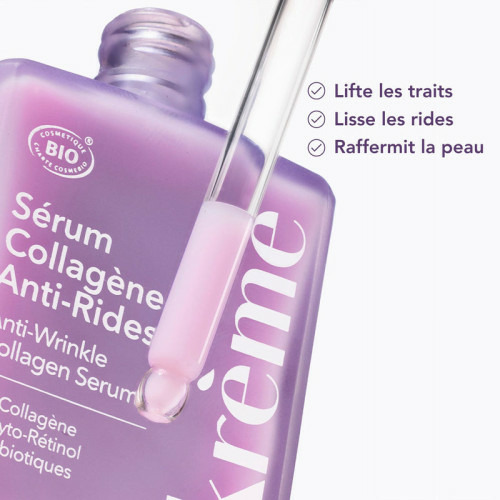 Le nouveau Sérum Collagène Anti-Rides associe une triple correction anti-rides dans un concentré soyeux :