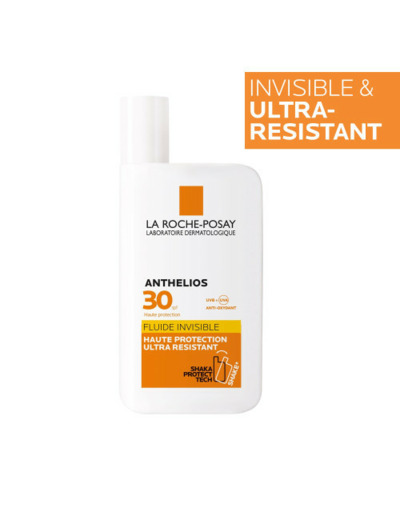 La crème solaire haute protection SPF30 avec parfum Anthelios Fluide Invisible Visage est enrichie en Eau Thermale de La Roche-Posay.