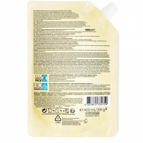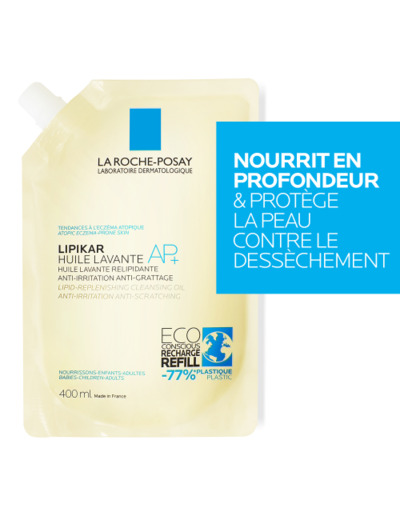 L'Huile lavante AP+ Lipikar de La Roche-Posay est une base lavante douce qui agit sur les 3 facteurs déterminants des peaux sèches à tendance à l'eczéma atopique: