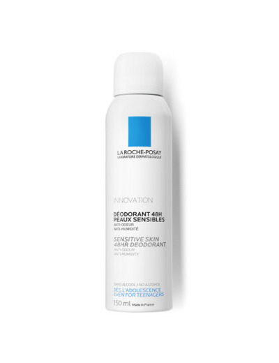 Le déodorant spray actif naturel Peaux Sensibles 48h de La Roche-Posay neutralise les odeurs pendant 48 heures* et lutte contre l’humidité. A l’Allantoïne apaisante et à l’Oxyde de Magnésium, un actif d’origine minéral pour une efficacité anti-odeur, comparable aux sels d’aluminium. Le déodorant anti-odeurs anti-humidité de La Roche Posay convient même pour les adolescents à partir de 13 ans.