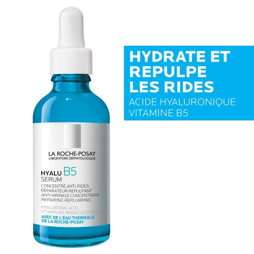 INNOVATION DERMATOLOGIQUE La nouvelle correction anti-rides pour repulper la peau. Ce sérum anti-rides a une formule régénérante unique, alliant deux types d’acides hyaluroniques purs, vitamine B5 et madécassoside, pour repulper, réparer la barrière cutanée et favoriser la régénération de la peau. Texture gel frais hydratant repulpant. Pour une routine complète, appliquez Hyalu B5 Soin après Hyalu B5 Sérum. Nos ingrédients : DUO D’ACIDES HYALURONIQUES Utilisé par les dermatologues lors d’actes esthétiques afin de répondre aux préoccupations des femmes concernant les rides et la perte de volume de la peau. L’acide hyaluronique est la molécule de référence en anti-âge. Les laboratoires La Roche-Posay utilisent de l’acide hyaluronique de haut et bas poids moléculaires afin de repulper la peau. VITAMINE B5 La Vitamine B5 est connue pour ses propriétés apaisantes et réparatrices sur la peau. Elle stimule la régénération et la résistance de la peau. MADÉCASSOSIDE Le madécassoside est extrait de la Centella Asiatica, il contribue à combler les rides. Actif apaisant, le Madécassoside booste l’effet réparateur de la Vitamine B5 et l’effet repulpant de l’acide hyaluronique.