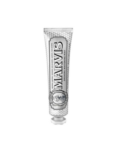 Le dentrifrice blanchissant fumeur Marvis est un dentifrice spécialement conçu pour les fumeurs afin d'assurer un effet blanchissant intense en éliminant les tâches liées à la fumée. Ce dentifrice Marvis prévient et efface le jaunissement des dents tout en renforçant l'émail des dents et en procurant une haleine fraîche.