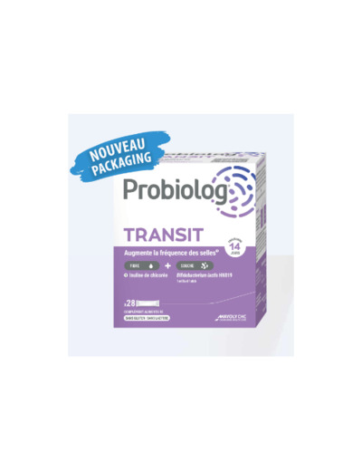 Probiolog® TRANSIT est une combinaison unique d'une souche microbiotique microencapsulée, Bifidobacterium animalis subsp. lactis BS01 avec une fibre, l'inuline de chicorée qui contribue à une fonction intestinale normale en accroissant la fréquence des selles.