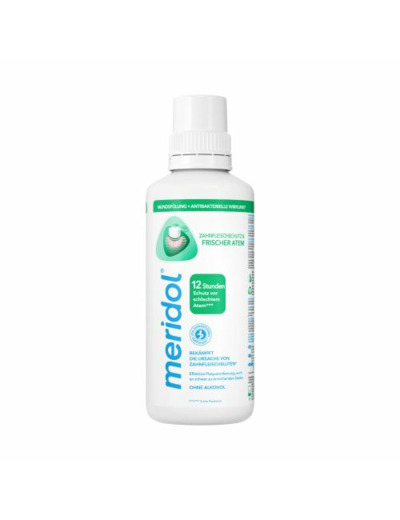 Le bain de bouche meridolProtection Gencives & Haleine Fraîche aide à protéger contre le saignement occasionnel des gencives et la mauvaise haleine. Sa formule bi-active avec du zinc combat directement la cause des saignements et de la mauvaise haleine. En plus de neutraliser les bactéries, il ralentit également leur croissance afin de favoriser la régénération naturelle des gencives tout en vous protégeant de la mauvaise haleine pendant 12 heures. Ses ingrédients actifs se répandent instantanément dans la bouche pour agir immédiatement en éliminant les bactéries responsables des odeurs sur les dents et la langue. La mauvaise haleine est instantanément éliminée. Ce bain de bouche aide à lutter contre la formation de la plaque dentaire, l'irritation des gencives, les saignements gingivaux occasionnels, la récession gingivale, les caries, la mauvaise haleine, les bactéries à l'origine des odeurs. Son utilisation quotidienne contribue à préserver l'équilibre naturel de la flore buccale. Profitez d'un soin doux et efficace pour vos dents, vos gencives et votre haleine avec le bain de bouche meridolProtection Gencives et Haleine Fraîche.