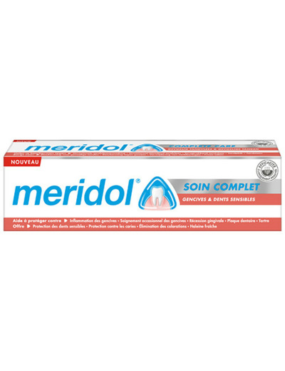 Faites bénéficier vos gencives et dents sensibles d’un brossage expert grâce au dentifrice Soin Complet gencives et dents sensibles de meridol. Il a été cliniquement prouvé que ce dentifrice Meridol soin complet gencives et dents sensibles apaise les symptômes des gencives et dents sensibles. La formule double action à base d'étain et de fluorure à un effet antibactérien longue durée pour des dents et des gencives saines. Le dentifrice soin complet gencives et dents sensibles est conçu pour lutter contre les bactéries de la plaque dentaire, principale cause des saignements occasionnels des gencives et des inflammations*, tout en protégeant les dents sensibles. Le dentifrice soin complet gencives et dents sensibles de meridol aide également à protéger contre les inflammations et les saignements gingivaux occasionnels, le déchaussement des gencives, la parodontite, la plaque dentaire et le tartre. Ce dentifrice soin complet gencives et dents sensibles assure également une protection contre les dents sensibles et les caries, tout en éliminant en douceur les taches et en rafraîchissant votre haleine.