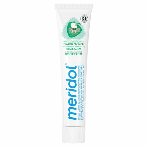 Le dentifrice meridolProtection Gencives & Haleine Fraîche aide à protéger contre les saignements occasionnels des gencives et la mauvaise haleine. Ce dentifrice pour les gencives a été spécialement développé avec une formule bi-active douce, comprenant du zinc, pour combattre directement la cause des saignements occasionnels des gencives et de la mauvaise haleine. La formule de ce dentifrice pour les gencives qui saignent occasionnellement, neutralise les bactéries et ralentit leur croissance. Ce dentifrice pour les gencives favorise la régénération naturelle des gencives tout en vous protégeant de la mauvaise haleine pendant 12 heures. Ce dentifrice pour mauvaise haleine aide à protéger contre la formation de la plaque dentaire, l'irritation des gencives, les saignements occasionnels des gencives, la récession gingivale, les caries, la mauvaise haleine, les bactéries à l'origine des odeurs. Profitez d'un soin doux et efficace pour vos dents, vos gencives et votre haleine avec le dentifrice meridolProtection Gencives & Haleine Fraîche.