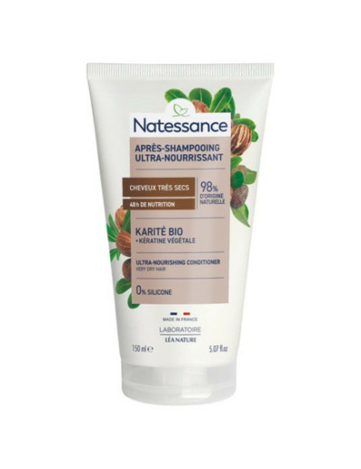 Natessance Après-Shampooing Nourrissant Argan Bio et Kératine Végétale 200 ml est un après-shampooing qui démêle et protège les cheveux sans les alourdir.