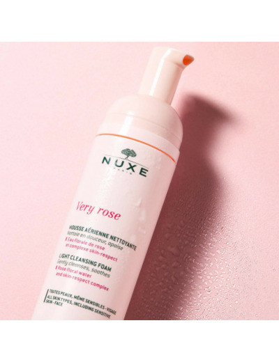 Nuxe Very rose Mousse Aérienne Nettoyante 150 ml est une mousse non desséchante à l'eau florale de rose et au complexe skin-respect qui nettoie en douceur et apaise le visage. Cette mousse fondante au doux parfum de rose et formulée à base :