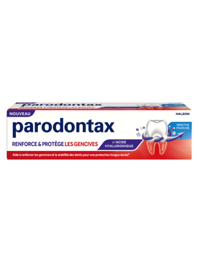 Le dentifrice Parodontax Strengthen & Protect Whitening aide à renforcer la barrière des gencives autour des dents pour une protection durable. Utilisé deux fois par jour, il contribue à préserver la santé des gencives.