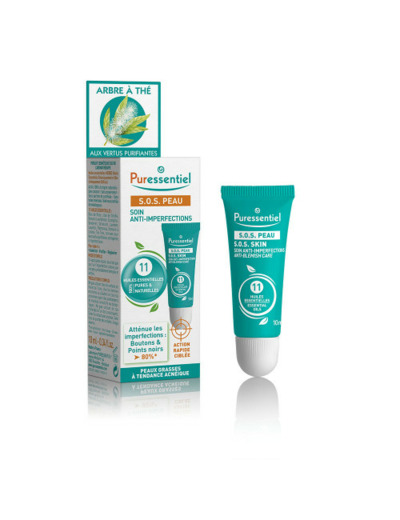 Le soin anti-imperfections S.O.S peau Puressentiel est composé notamment de 11 huiles essentielles dont l'huile essentielle d'arbre à thé (tea trea) connues pour leurs vertus purifiantes, astringentes et régénératrices. Grâce à son action rapide et ciblée, il aide à assécher, purifier et régénérer les peaux grasses à tendance acnéique.