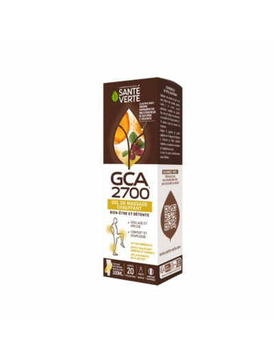 Santé Verte GCA 2700 Gel de Massage Chauffant 100 ml est un gel chauffant qui réunit 16 actifs ciblés dont de l'extrait d'Harpagophytum, de l'eau florale d'Hélichryse et de l'huile essentielle de Gaulthérie au parfum apaisant et relaxant.