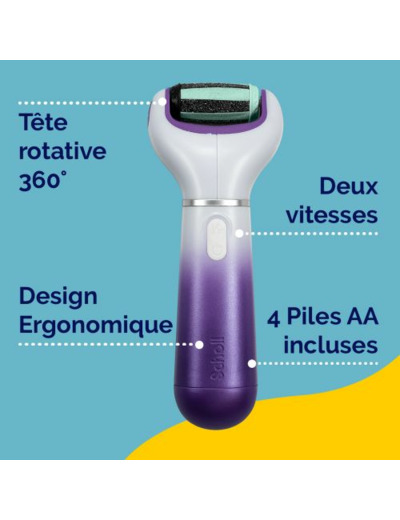Grâce à son rouleau constitué de micro-grains extra exfoliants, la Râpe électrique School Velvet Smooth™ adoucit la peau en éliminant les callosités dures et tenaces en quelques minutes, vous permettant d'obtenir de beaux pieds que vous n'hésitez plus à montrer. C'est si facile à utiliser ! Faites des mouvements réguliers en exerçant une pression légère à moyenne sur les callosités et vous verrez la peau morte disparaître. Sa poignée au design ergonomique rend l'utilisation très agréable.