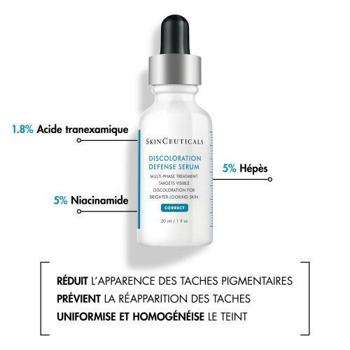 Formulé à base d'un ingrédient anti-taches dernière génération - l'acide tranexamique -, ce sérum haute efficacité a cliniquement prouvé sa capacité à réduire l'apparence des défauts de pigmentation, même les plus tenaces, tels que les marques d'acne et le Mélasma.