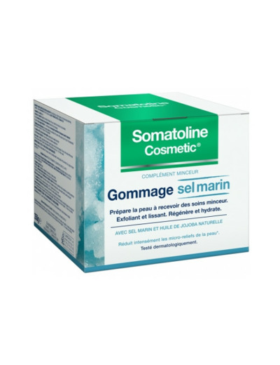 Somatoline Cosmetic Gommage Sel Marin complément minceur est un exfoliant qui prépare la peau à recevoir des soins minceur. Il contient des sels marins aux grains de tailles différentes, de l'huile de jojoba, de l'huile de germe de blé, de la vitamine E
