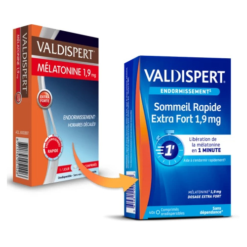 COMPLEMENT ALIMENTAIRE SOMMEIL : Valdispert Mélatonine 1,9mg a été spécialement conçu pour réduire le temps d'endormissement et aider à réduire les effets des décalages horaires.