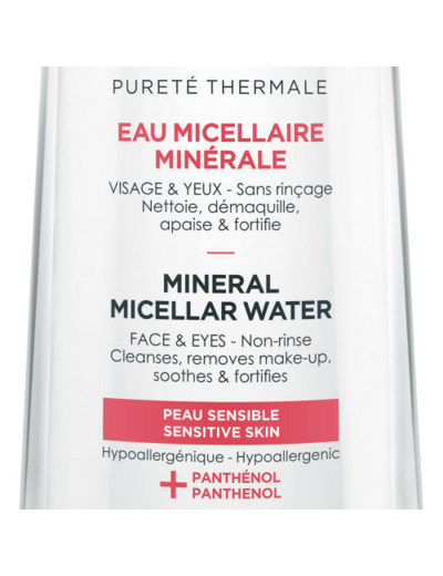 Cette régénération est complétée par le Panthénol qui stimule la prolifération des cellules constitutives de l’épiderme, les fibroblastes. Élaborée avec un pH proche de celui de la peau, cette solution micellaire de Vichy Pureté Thermale convient aux yeux sensibles ainsi qu'aux porteurs de lentilles.