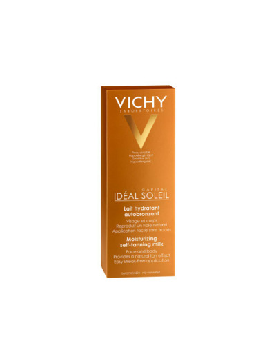 Vichy Capital Idéal Soleil Auto Bronzant Lait Hydratant Visage et Corps 100 ml est élaboré à partir de l'eau thermale Vichy. Il reproduit le bronzage naturel dès 1 heure, et son application est facile et sans trace.