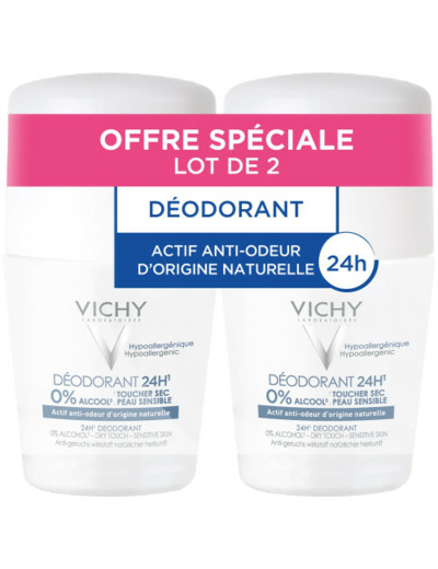 Lot de 2 Le Roll-on déodorant 24h toucher sec, actif anti-odeur d'origine naturelle.