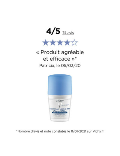 Association du gluconate de zinc et des 15 minéraux de l'eau minéralisante de Vichy pour une efficacité anti-odeur jusqu’à 48h, à la Provitamine B5 apaisante.
