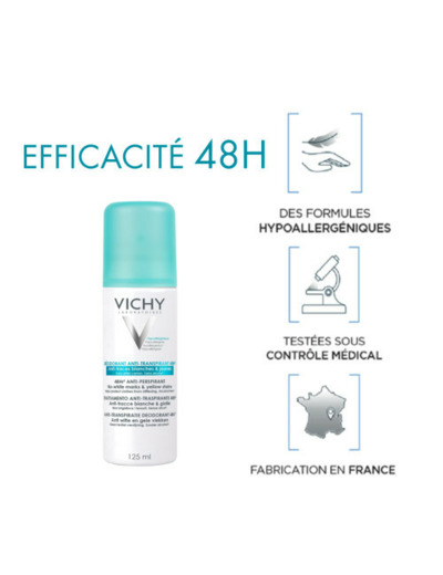Aérosol Anti-Transpirant 48h, Anti-Traces Jaunes et Blanches, anti effet carton - Lot de 2