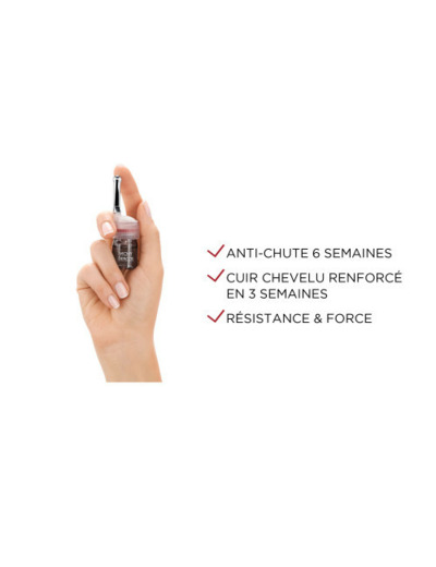 Ce soin anti-chute est une réelle innovation car il est formulé à base d'un complexe Aminexil Clinical 5 qui est une association exclusive de l'Aminexil, une molécule anti-chute de référence à l'efficacité clinique avec 5 actifs : Arginine, SP94, Vitamines PP/B6, Octéine et Eau Thermale minéralisante de Vichy. Depuis la racine, il agit en renforçant l'ancrage dans le cuir chevelu afin de freiner la chute en 6 semaines. Son applicateur massant va stimuler en profondeur la micro-circulation. Ce soin augmente efficacement la résistance du cuir chevelu mais également la résistance de la chevelure, elle est plus épaisse et plus résistante. Hypoallergénique. Produit testé sur cuir chevelu sensible.