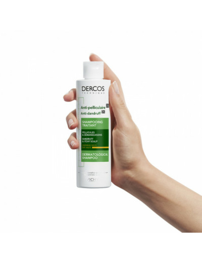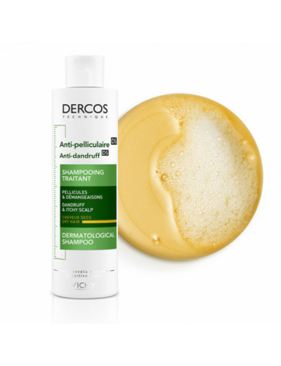 Le shampooing anti-pelliculaire Vichy Dercos Shampooing Traitant Antipelliculaire Cheveux Secs agit sur les pellicules tenaces dès la première utilisation. Il élimine les pellicules et soulage les démangeaisons, tout en nourrissant et en apaisant les cuir chevelus secs. Le contrôle anti-pelliculaire dure jusqu'à 6 semaines. Les cheveux sont sains, souples et brillants.